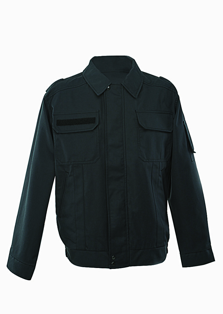 Collared front fastening jacket with multiple pockets for added utility.