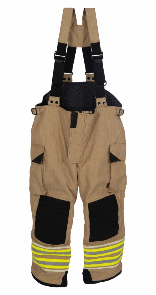 High-visibility fire suit trousers with Kevlar® reinforcement, ergonomic design, and breathable reflective detailing for comfort, durability, and safety